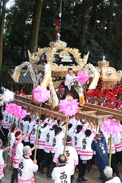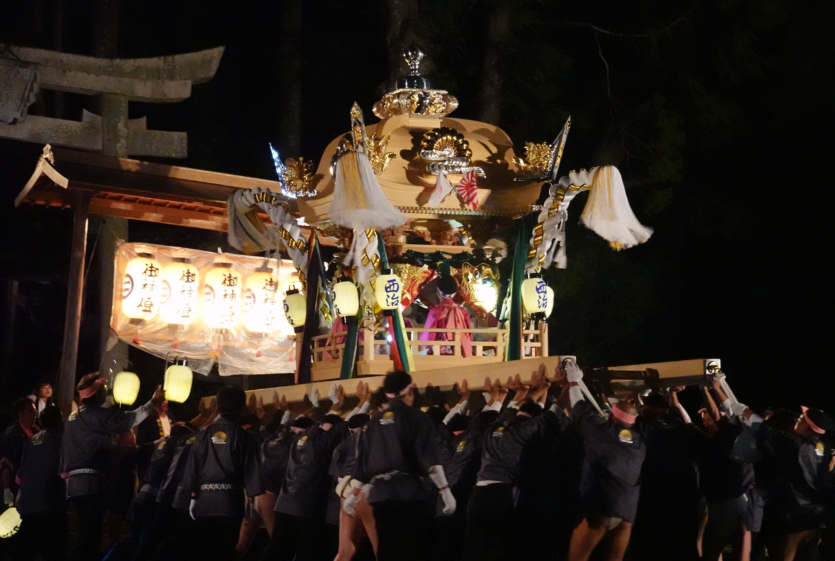 投稿者:RONさん 令和元年10月14日西治集会所前にて、新調したモノトーンの法被に映える白木屋台(西治区)