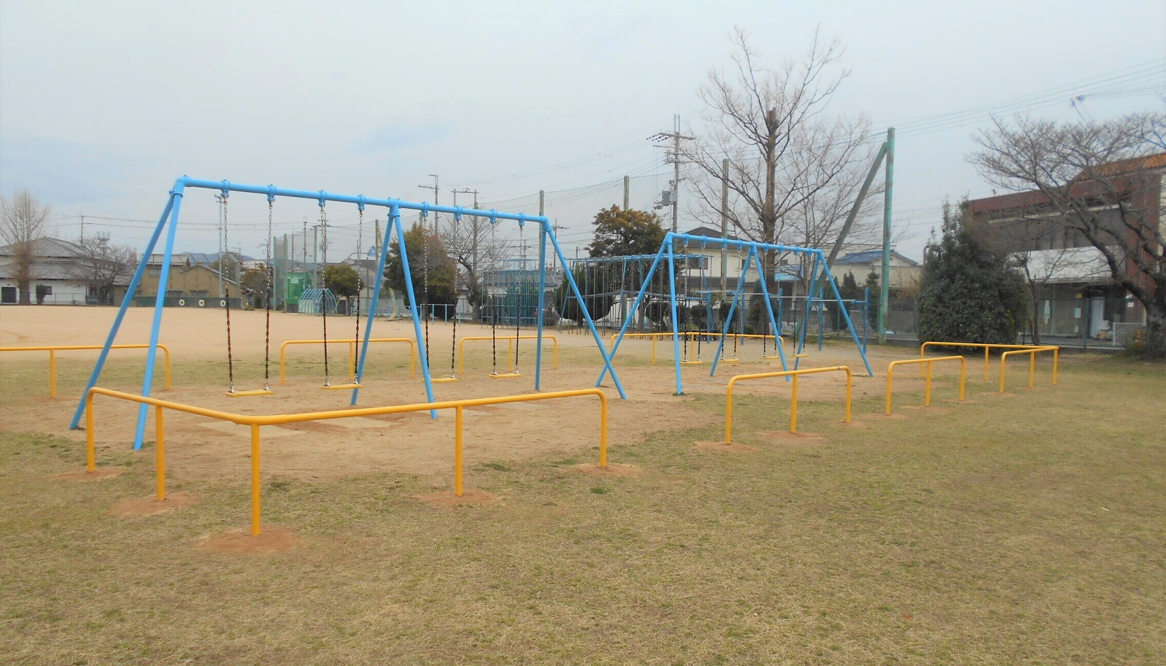 子どもたちの健全な心身の発達に資することを目的とした公益財団法人ライフスポーツ財団より支援金を頂き、老朽化が進んでいた吊輪の撤去と児童同士や遊具との接触の危険な状況改善のためにブランコの境界柵の設置が終了しました。