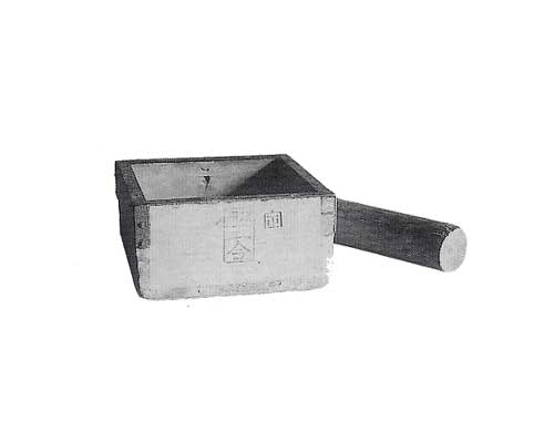 五合(0.9リットル)分の量をはかるのに使います。計量する際、ふつう口縁にすり切り一杯とします。