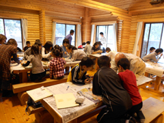 実際に竹笛やお手玉を作り、竹トンボや竹