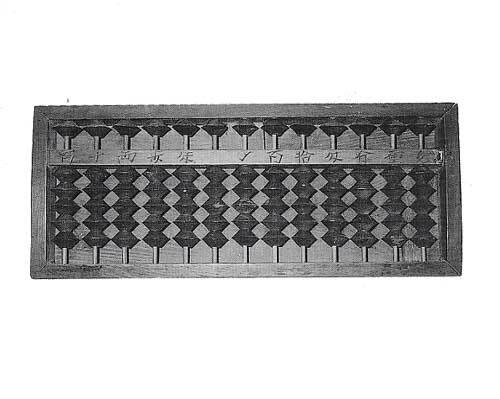 このそろばんは五つ珠で金・銀計算に用いられたものです。