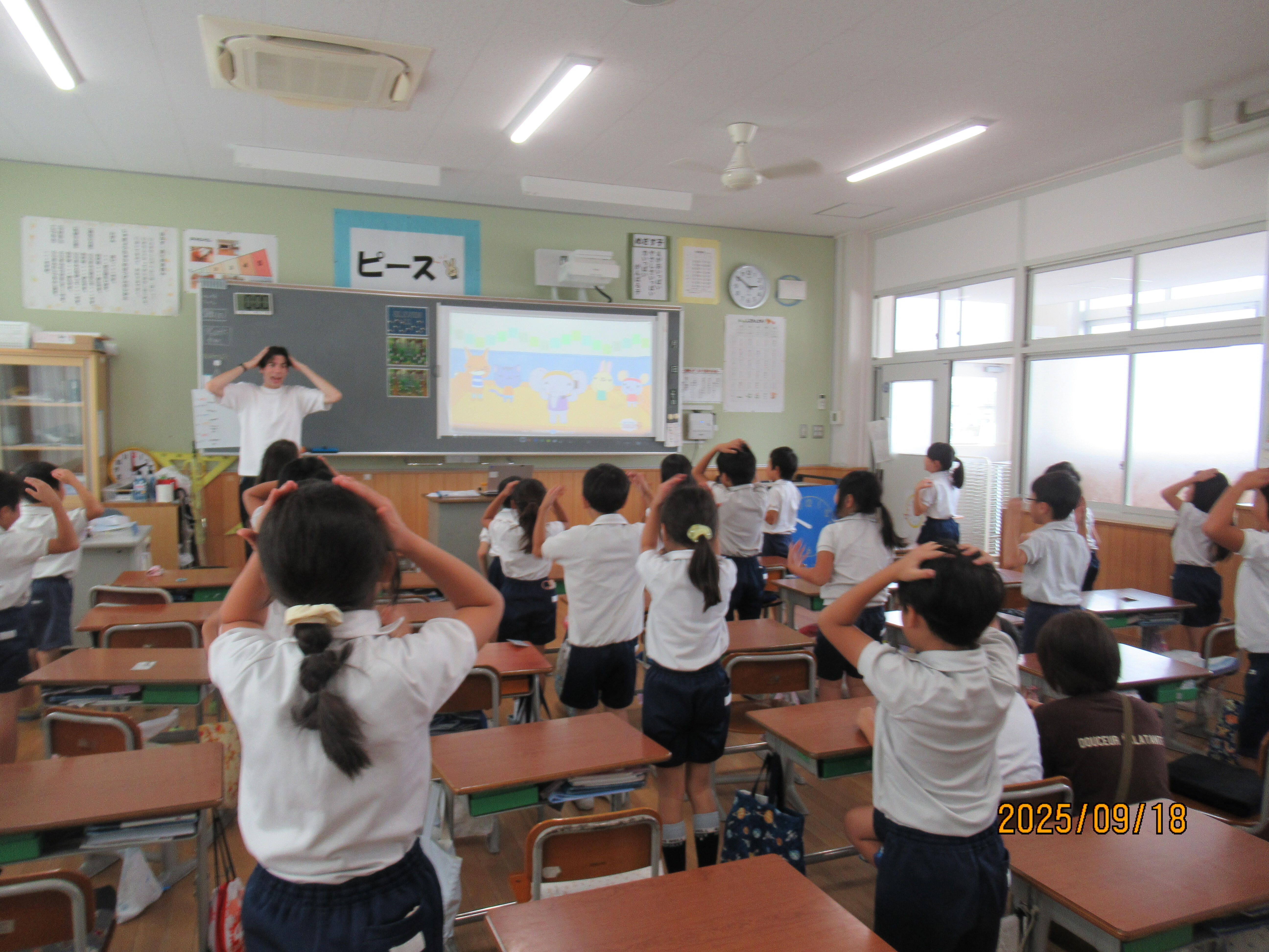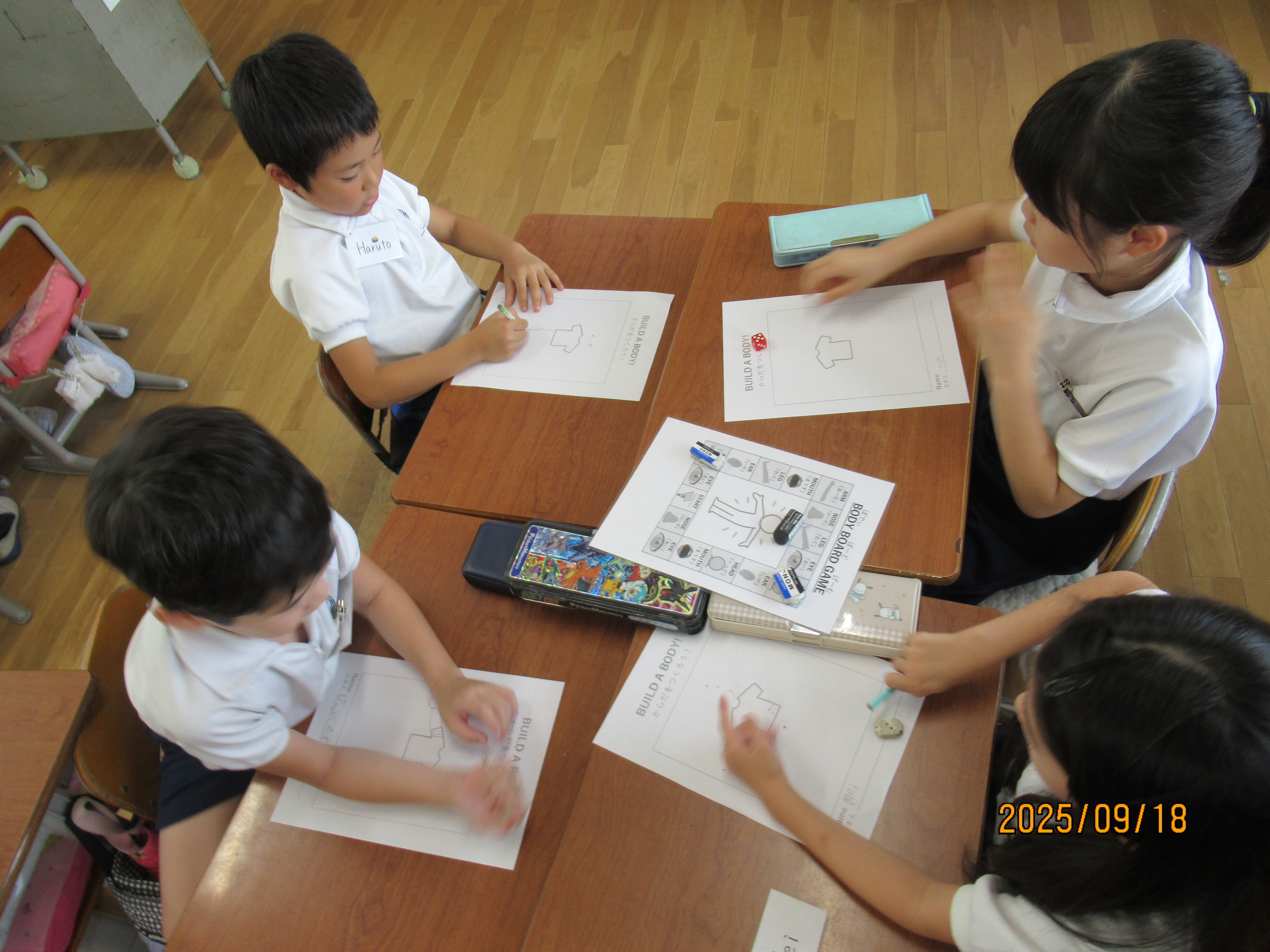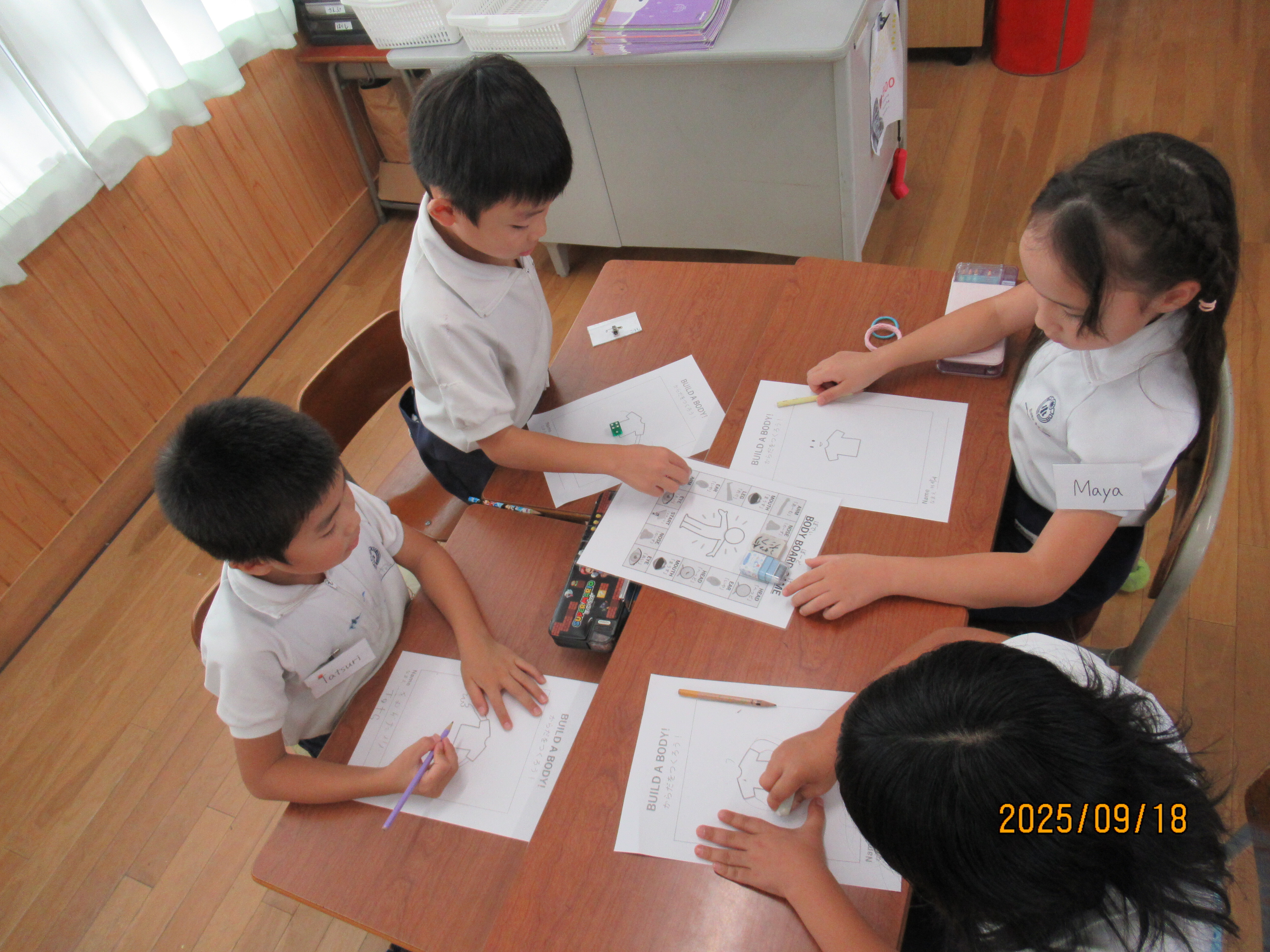月や数字、体の部位を英語で勉強しました。体を動かしながら楽しく覚えることができました。