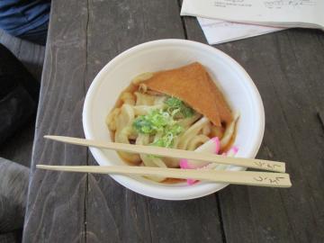完成した釜揚げうどんと手作りの竹はし