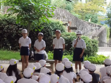 帰校式の代表児童あいさつ