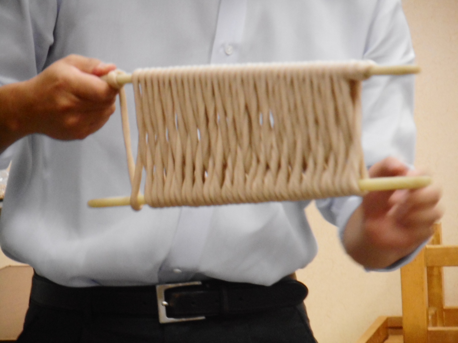 まず、学校給食の栄養士の先生に来ていただきもちむぎの栄養面のお話をしてもらいました。食物繊維などお米より栄養素が高いものがたくさんあることを教えてもらいました。