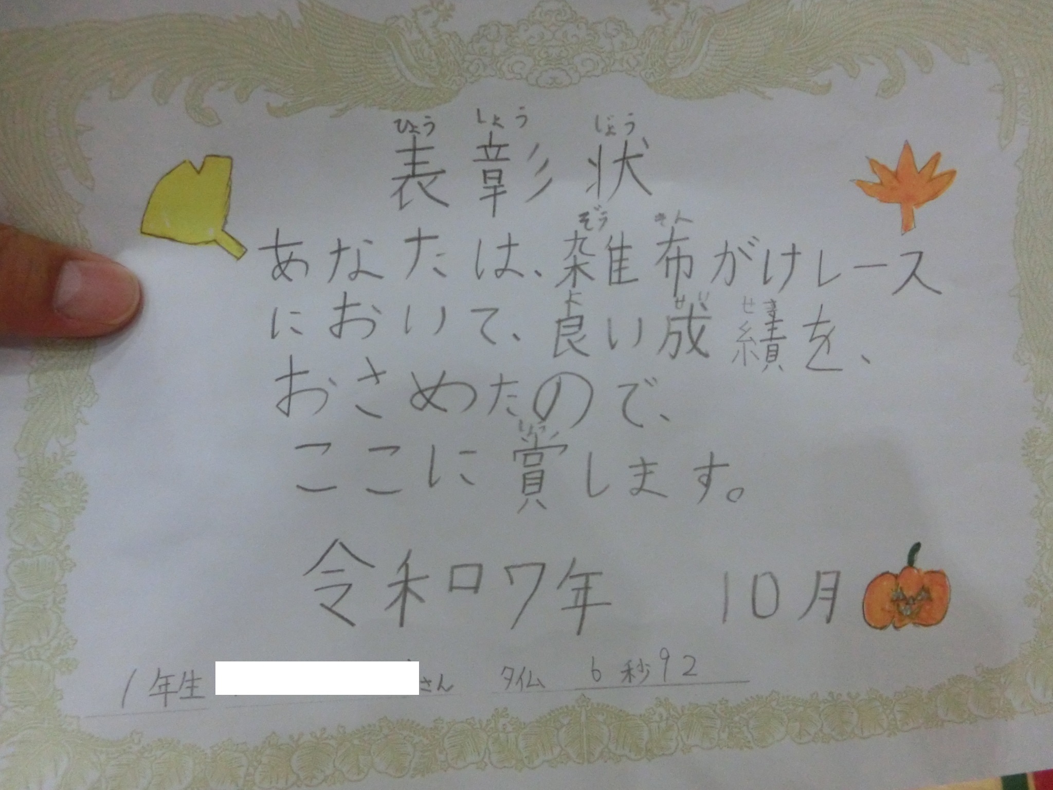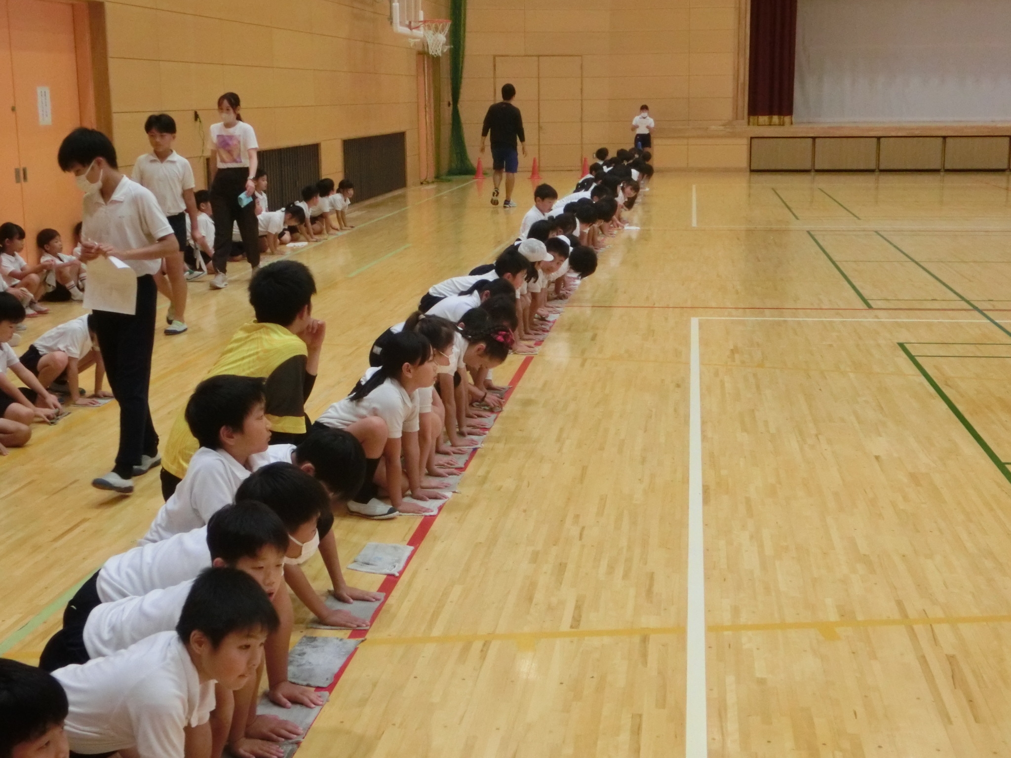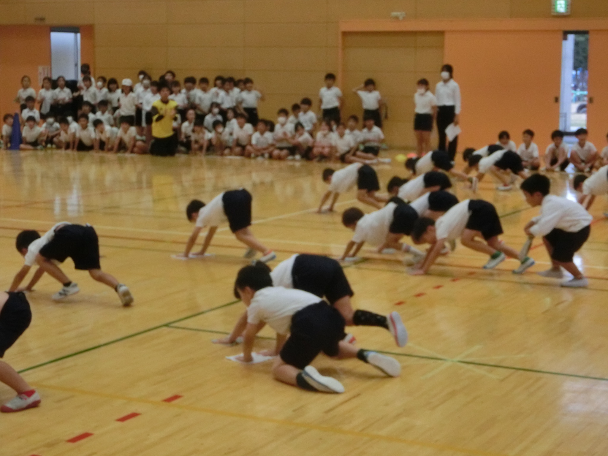 希望者なら誰でも参加できる児童会主催のみんな寄っといで集会「ぞうきんがけレース~1・2・3の部~」が、約90名の児童が参加し、お昼休みに体育館で行われました。各学年ごとにマイぞうきんを押しながら全速力で約20mの距離を疾走する姿は、なかなかの迫力です。優勝児童は、表彰状をもらい、とてもうれしそうでした。明日は、4・5・6年の部が行われます。