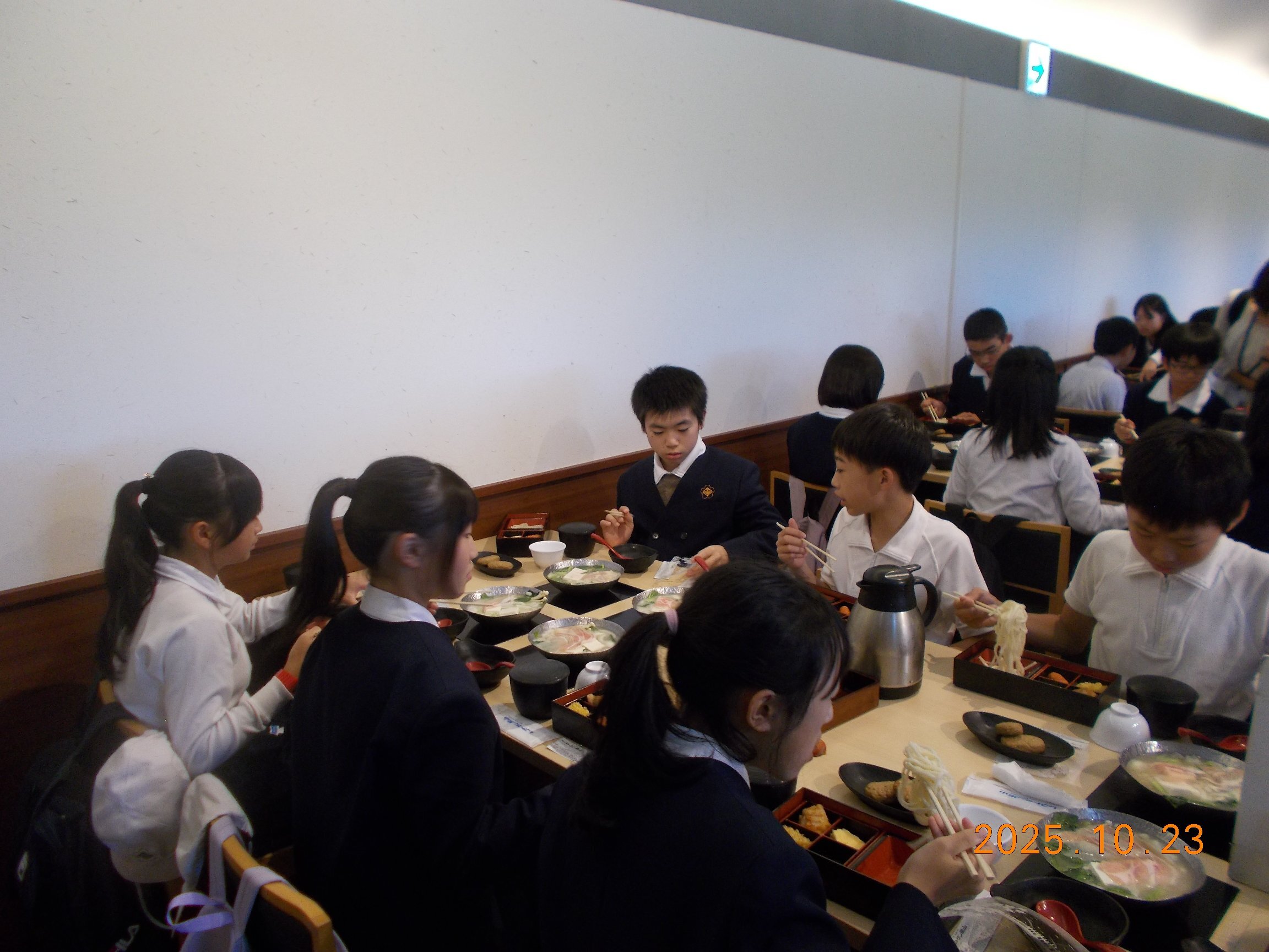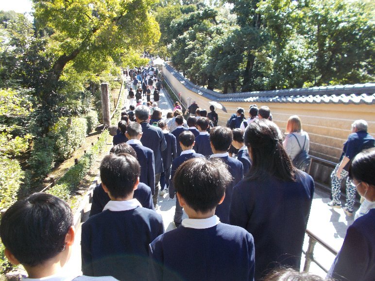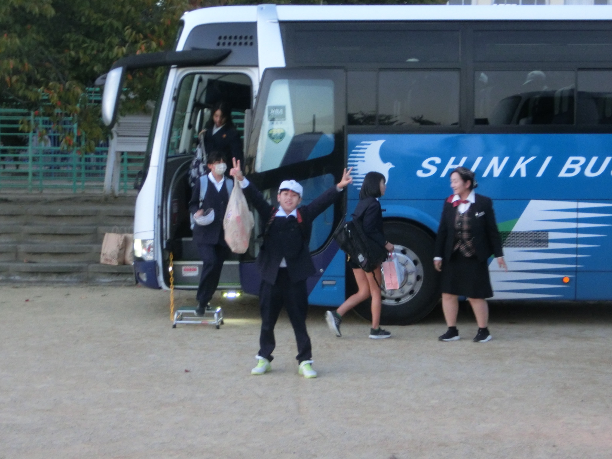 修学旅行2日目です。願いが叶い、今日は朝から快晴です。いざ出発!