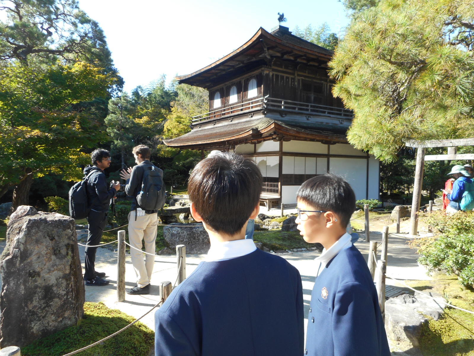 《銀閣》「しぶい!」という声も聞かれ、子どもたちは、そのシンプルで落ち着いた雰囲気を気に入ったようです。朝の清々しい時間帯に拝観でき、静かな美しさを感じていました。