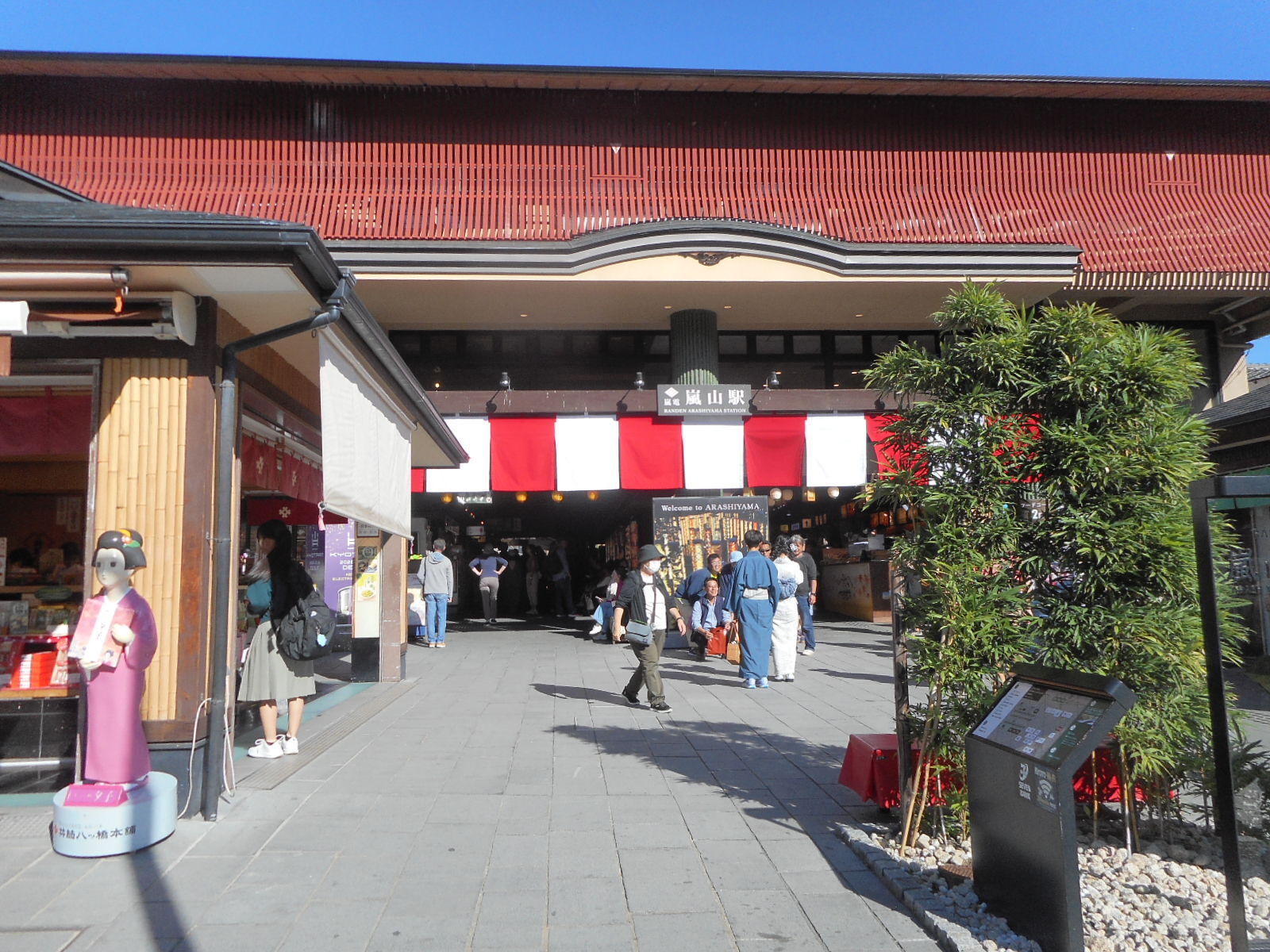 《嵐山(昼食・買い物)》ランチタイムの後は、班別でお買い物です。渡したい人を思い浮かべ、いろいろと目移りしながら、班のメンバーとああでもないこうでもないと言いながら、お土産を選びました。