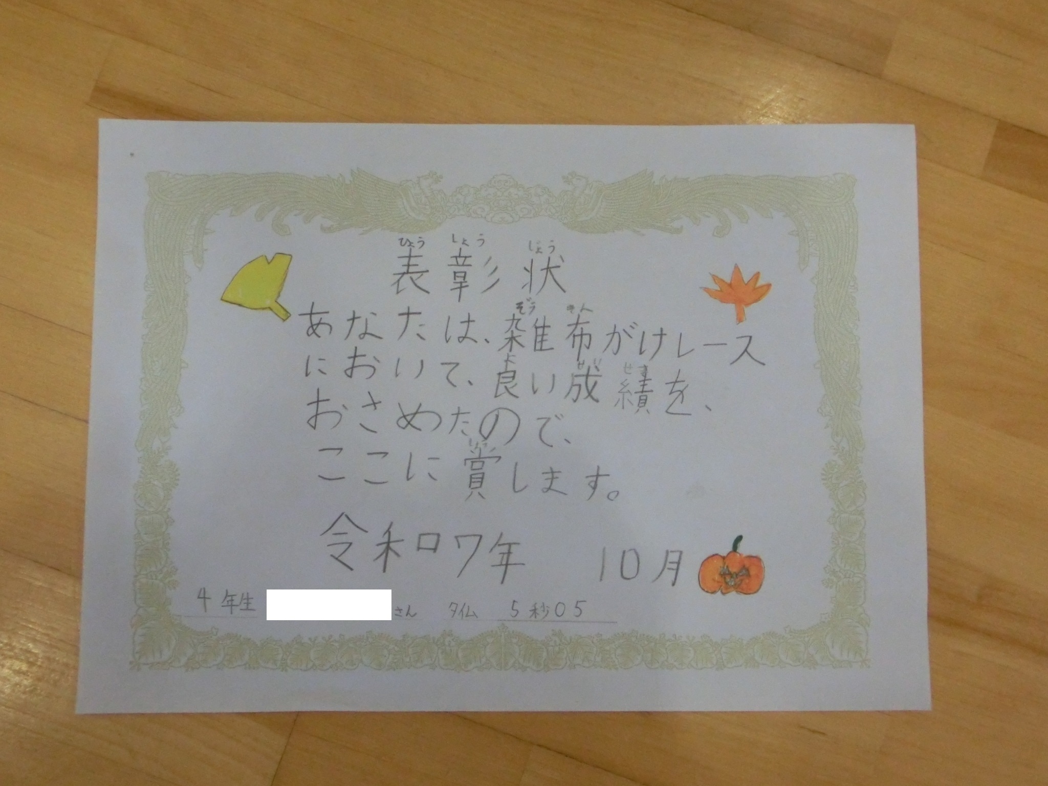 昨日の「ぞうきんがけレース~1・2・3の部~」に引き続き、「ぞうきんがけレース~4・5・6の部~」が、約120名もの児童が参加して行われました。さすが高学年です。スピード感が違います。田原小学校ぞうきんがけレースで最高タイムをたたき出したのは、なんと4年生で、タイムは、5秒05でした。6年生の悔しそうな表情が印象的でした。