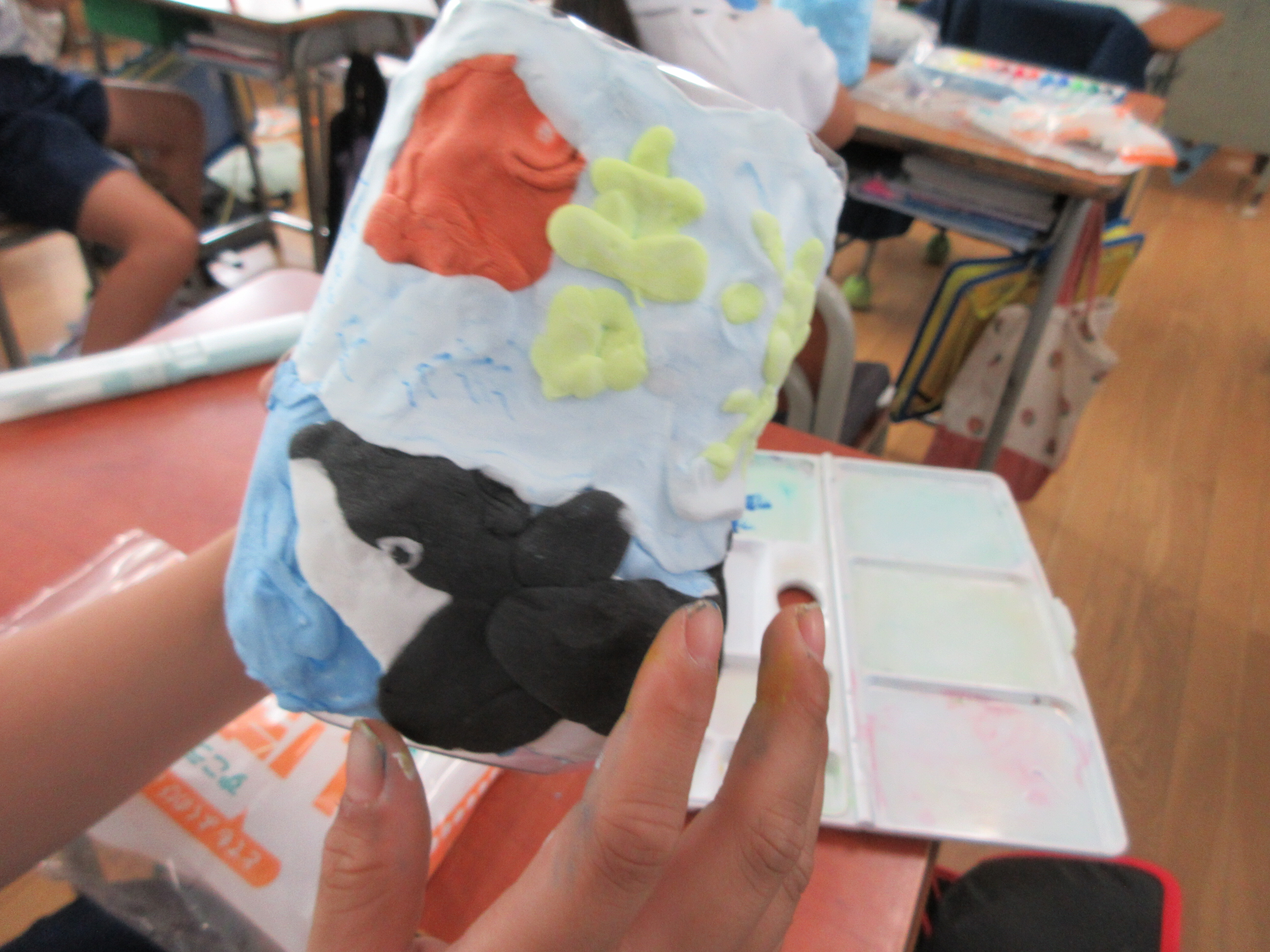 紙粘土を使ってオリジナルの花びんを作りました。音楽会では、この花瓶にお花を入れて飾る予定です。音楽会や秋など、思い思いのテーマで楽しく制作しました。