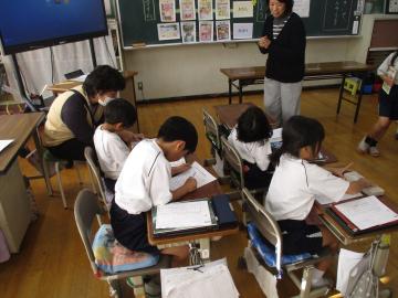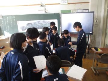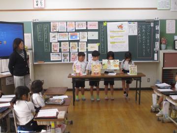 国語の「ブックトークでいろんな本に出あおう」という単元の勉強を多くの先生が参観しました。