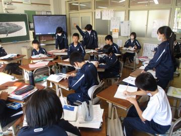 ノートに自分の意見を書いた後、机を円形にして討論が盛り上がりました。