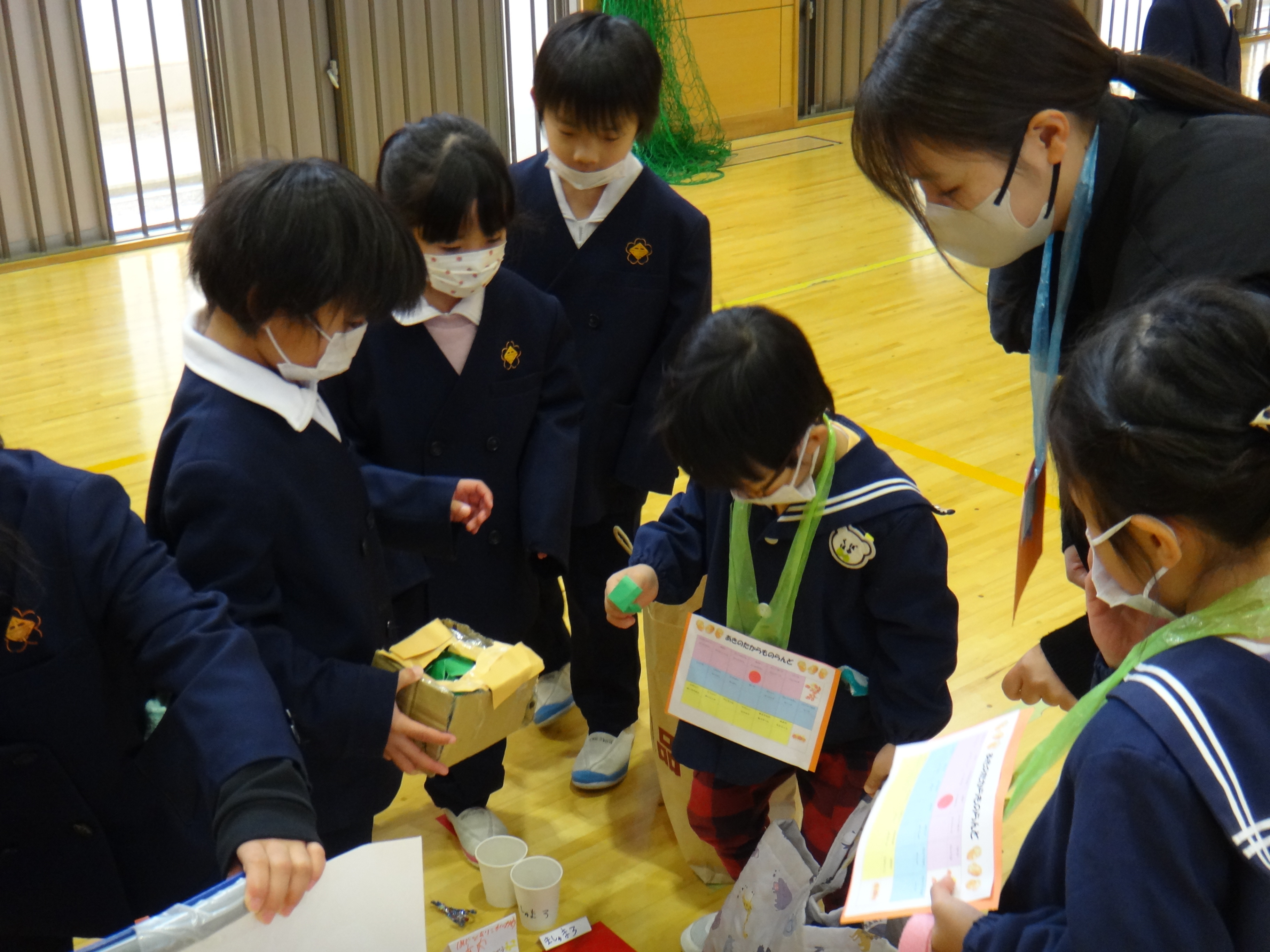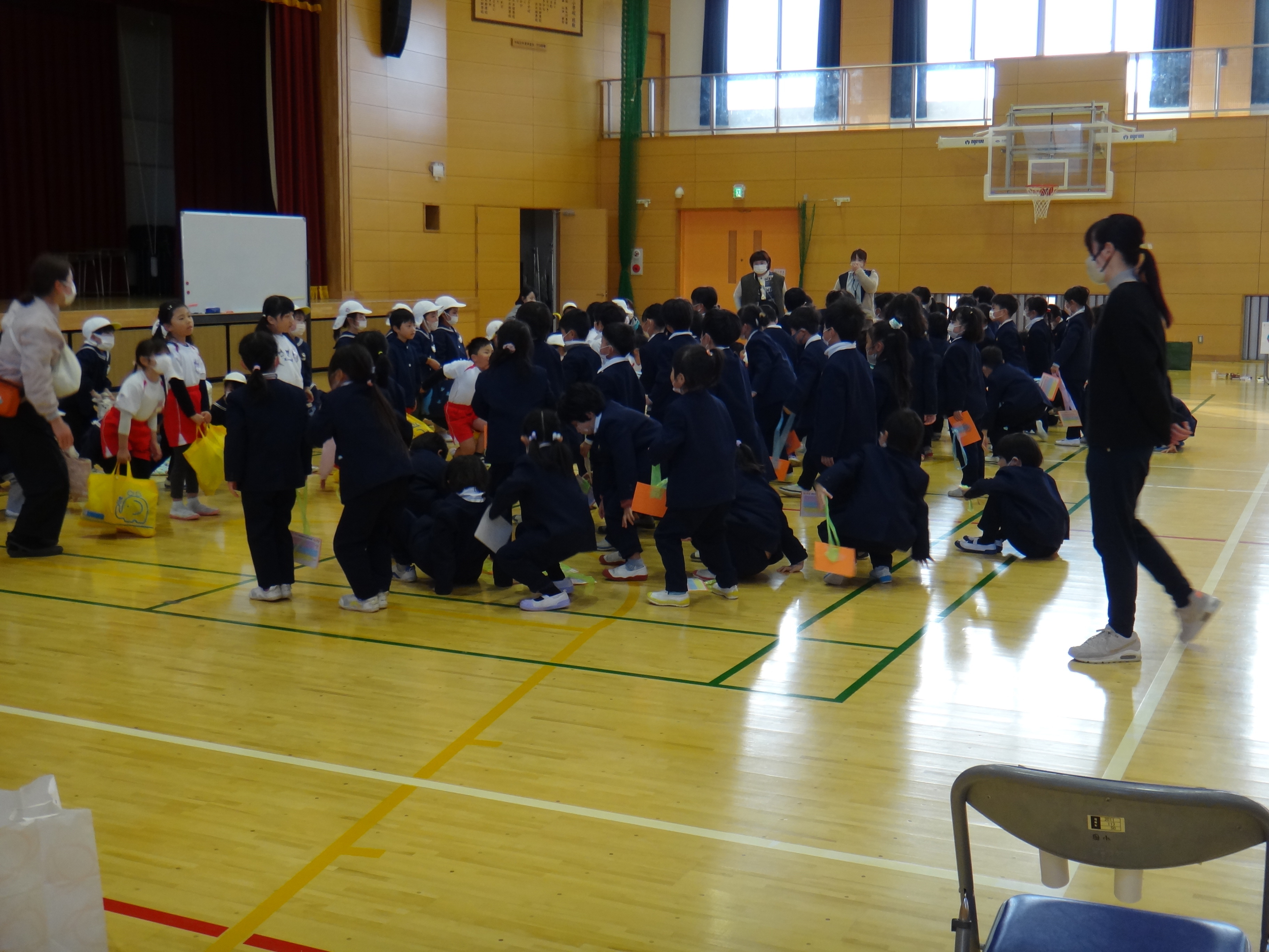 生活科で、秋見つけをしてから学習を広げ、みんなで遊べるおもちゃや飾りを作りました。今日は田原幼児園や姫学こども園の園児を招待して、「秋のたからものランド」を開きました。遊びの仕方を説明したり、カードを渡したりする1年生は、頼もしいお兄さん、お姉さんになっていました。心温まる、素敵な時間を過ごせました。