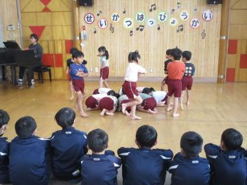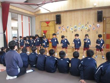 12月6日(土)に予定されている幼児園の「生活発表会」の予行として、5年生が発表を見せてもらいました。