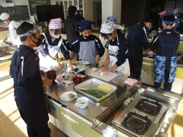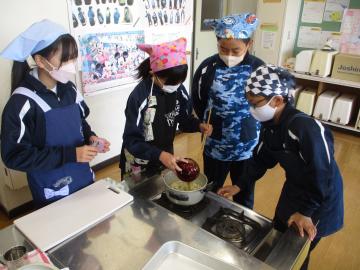 調理自習で、ご飯を炊いてみそ汁を作りました。