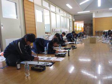 長い書初め用紙に書くのは初めてですが、文字の大きさを考えながら集中して書けました。