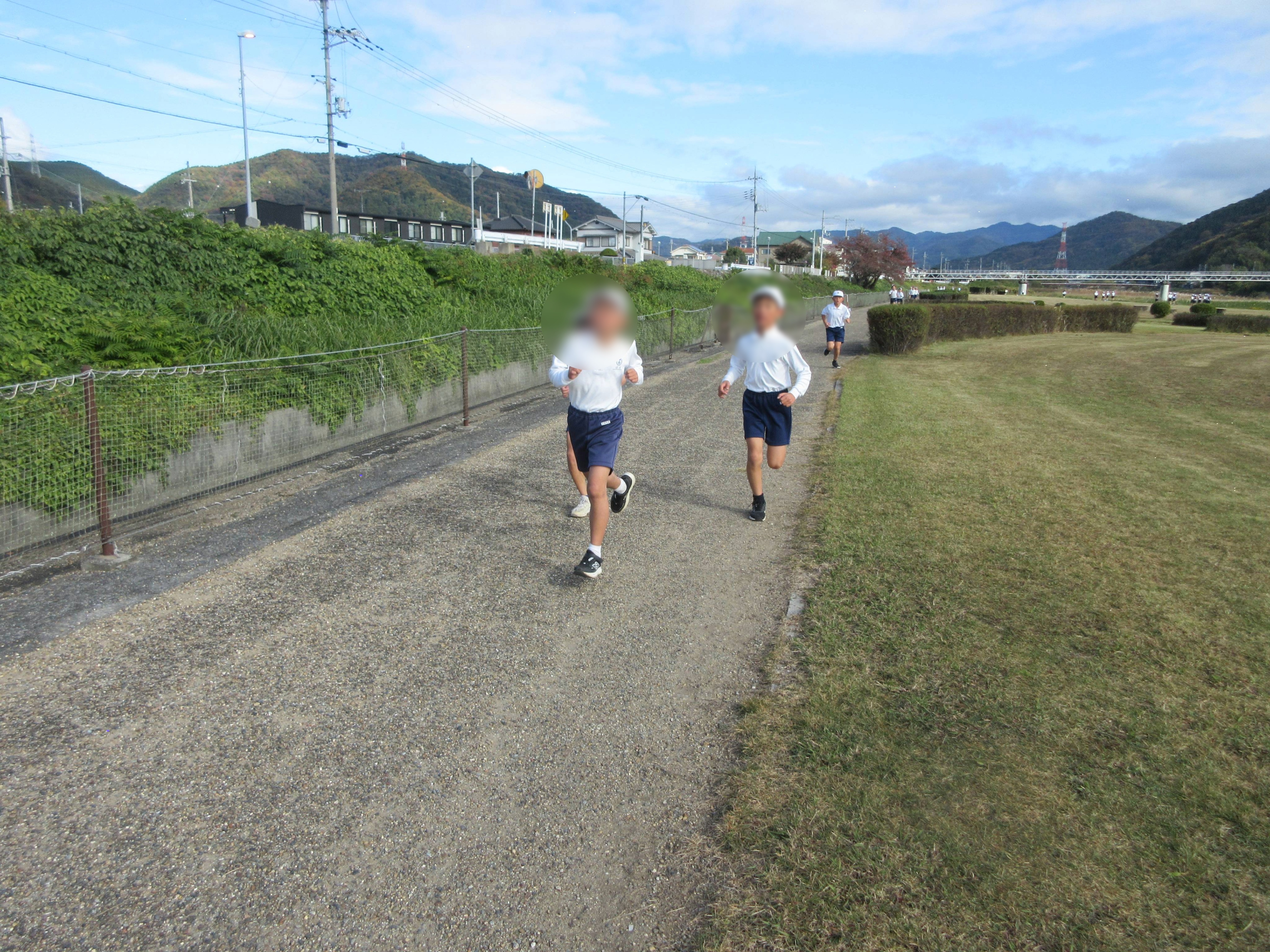 マラソン大会に向けて、河川敷でコースの確認と試走を行いました。「心も体も鍛えよう!」とそれぞれの目標に向かって力いっぱい走る姿がとても素晴らしかったです。本番でも一生懸命走ります。応援よろしくお願いいたします。