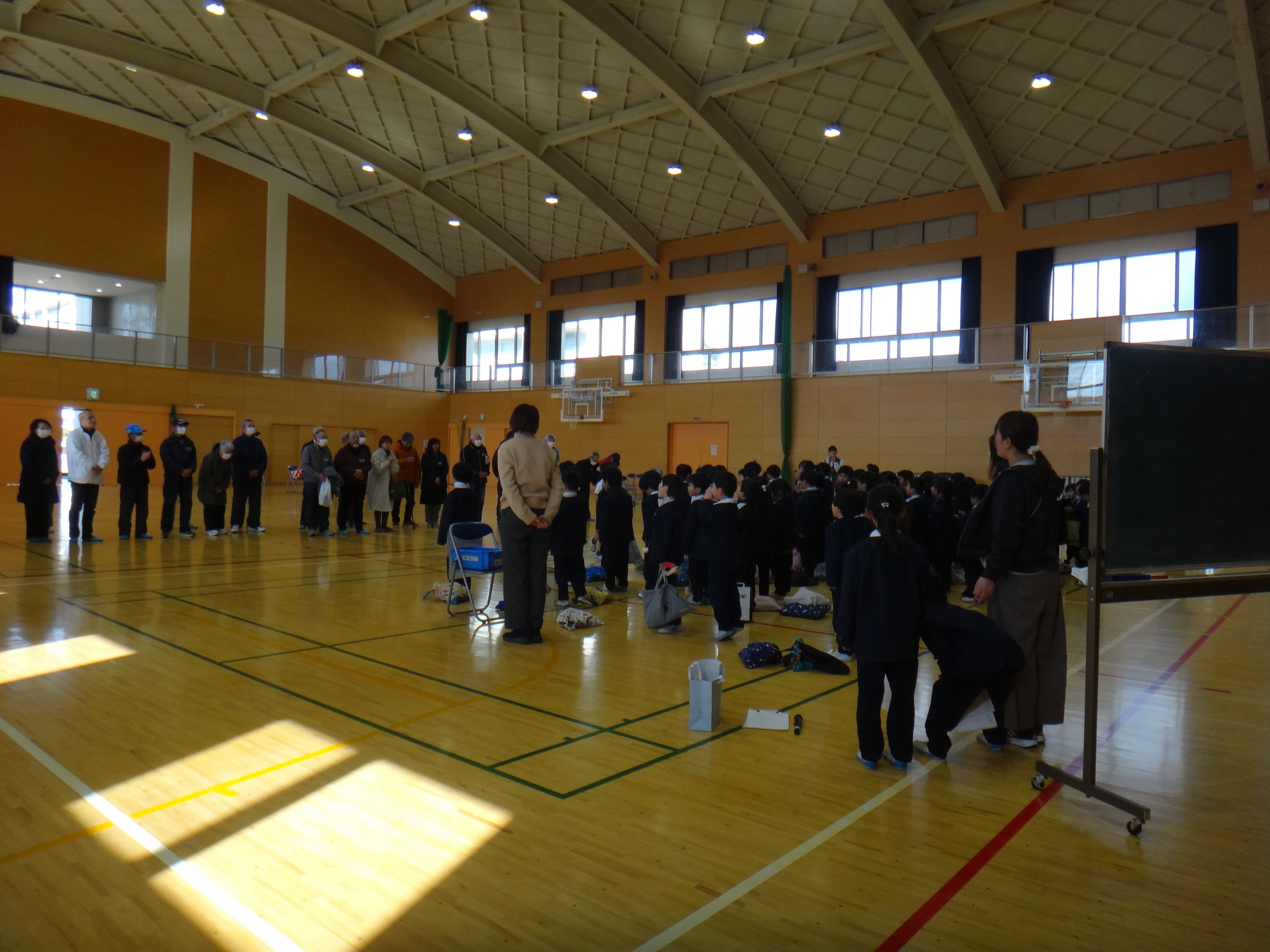 祖父母の方や、地域の方に来ていただき、昔から伝わる遊びについて、交流しながら教えていただきました。やったことのある遊びもあれば、初めて体験する遊びなど、子どもたちは教えていただきながら何度もチャレンジして、楽しく体験することができました。寒空の中、田原小学校の子どもたちのためにお越しいただいたボランティアの皆様、本当にありがとうございました。