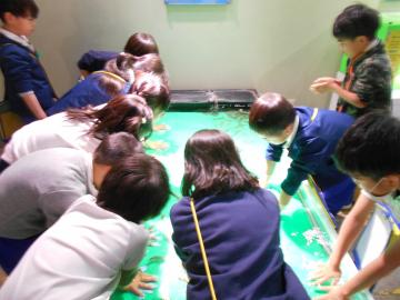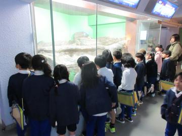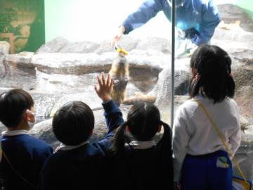 冬日和の中、待ちに待った校外学習に行きました。行きのバスからワクワクした面持ちでおしゃべりしていました。姫路水族館に着くと、新館では、思い思いに生き物を見て回って楽しみました。
