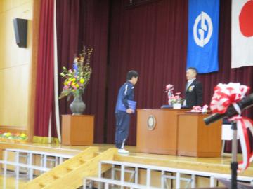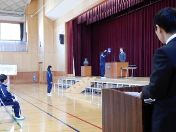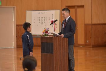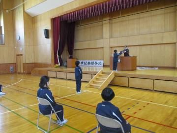 体育館で修了式を行い、各学年の代表に修了証を授与しました。