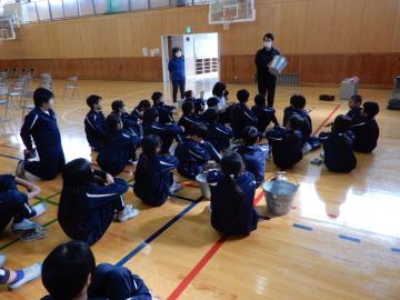 その後は、小学校の担任が2時間授業をした後、中学校の先生に体育と英語を教えてもらいました。