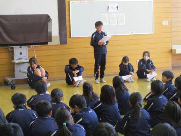 今日は、地区児童会を開き、3学期の登校班の反省と新登校班の確認をしました。