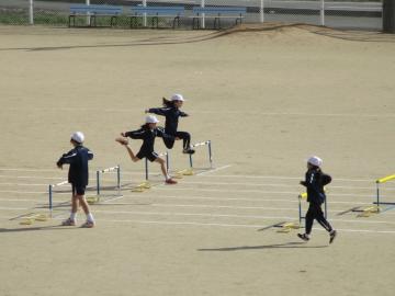 4年生は、体育の時間にハードル走に挑戦しています。