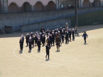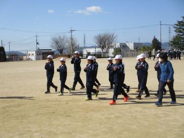 今年度中の練習も、いよいよ今日が最後になりました。運動場で行進を中心に練習しました。