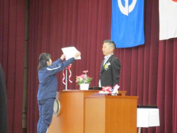 教室で担任の先生から修了証を授与