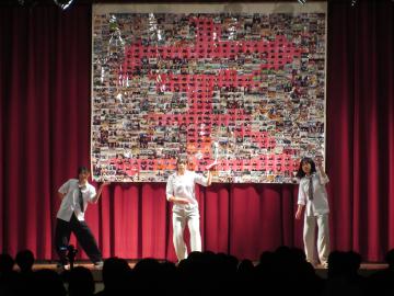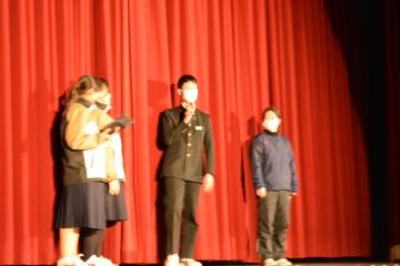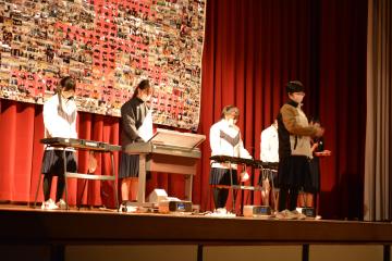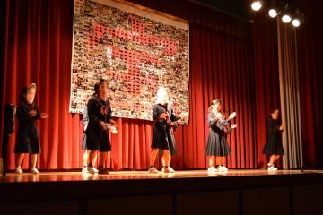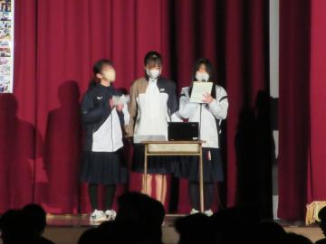 三年生を送る会を行いました。卒業を迎える三年生を送るために、一・二年生がさまざまな出し物を披露しました。