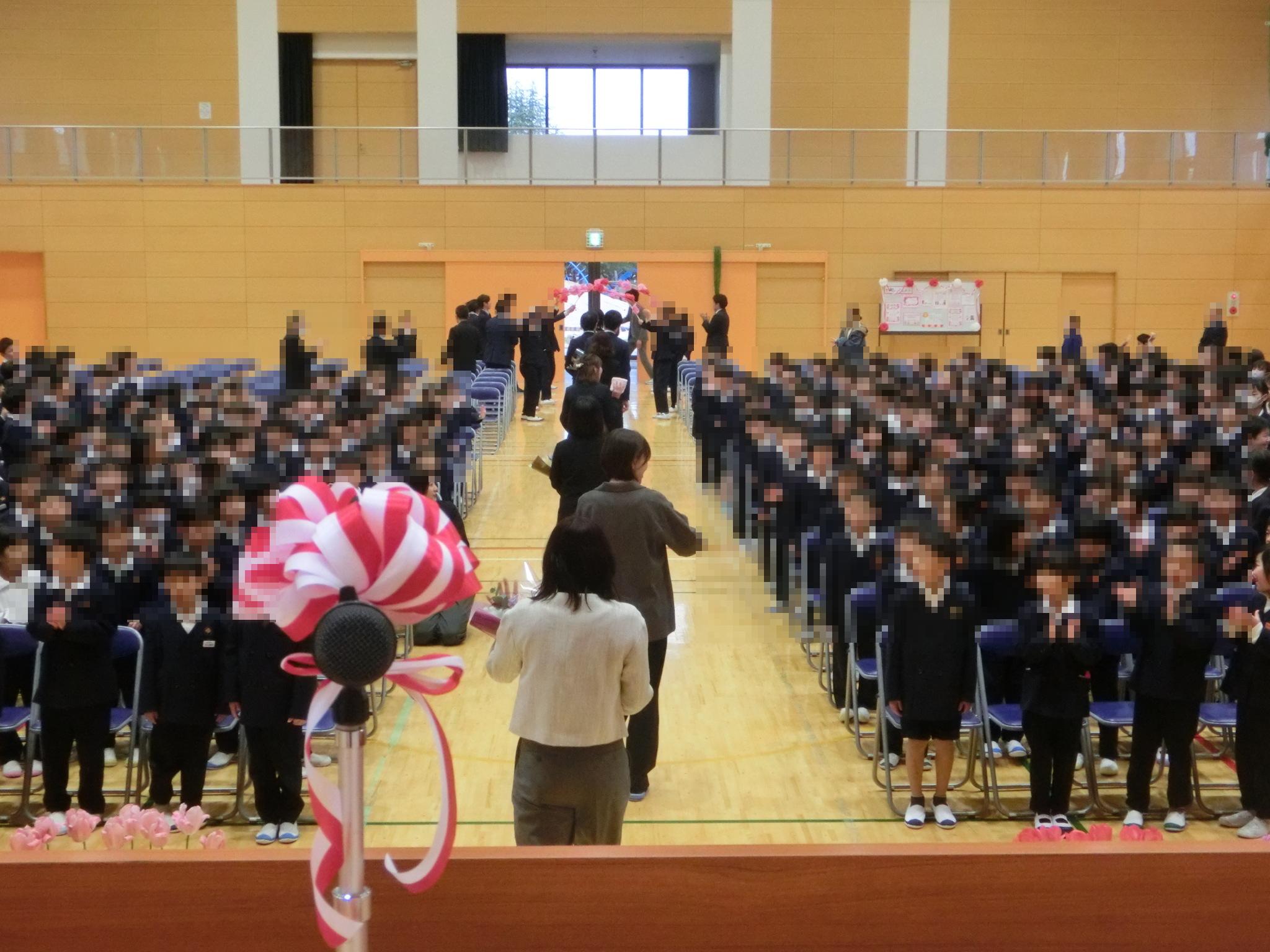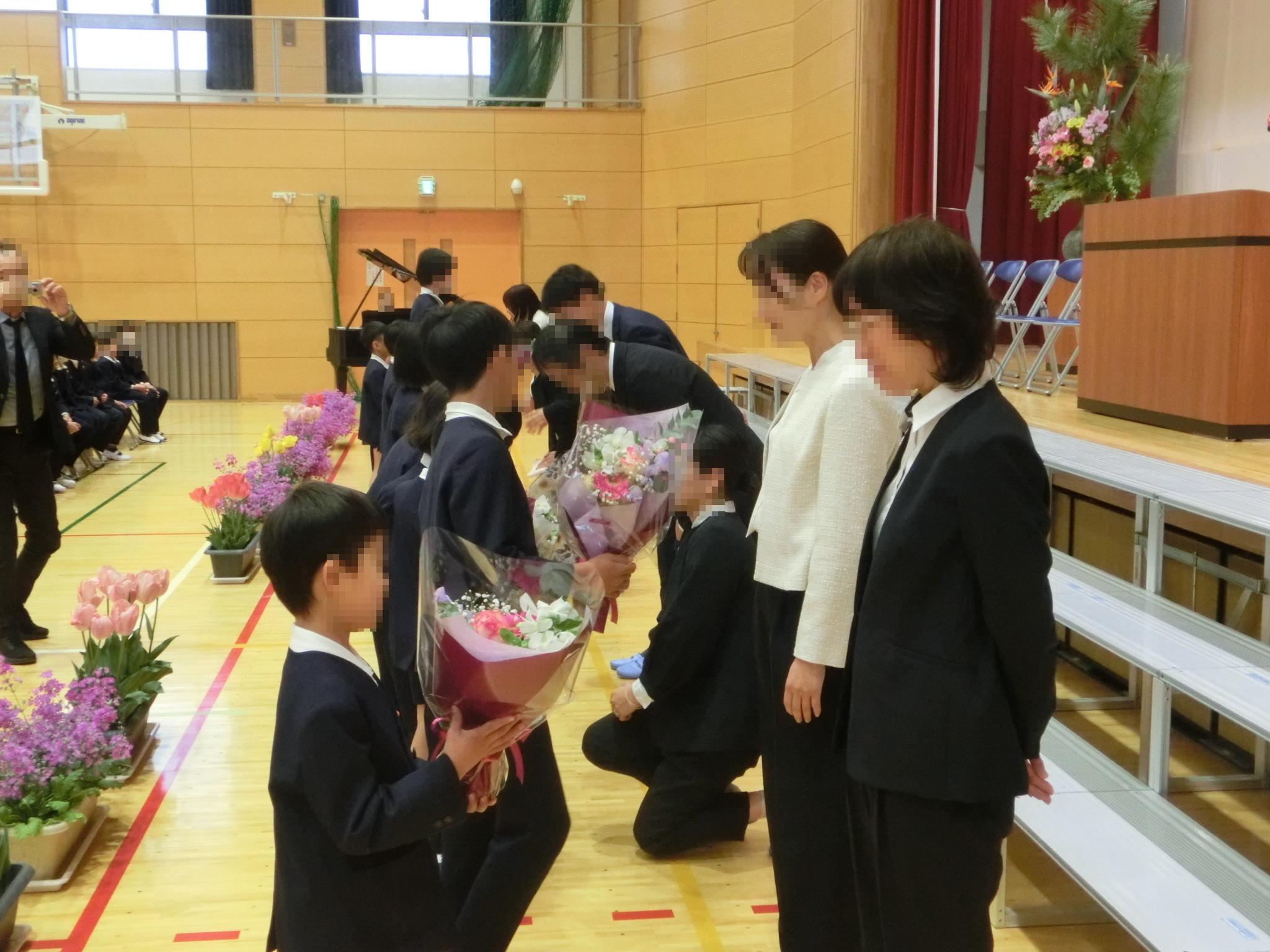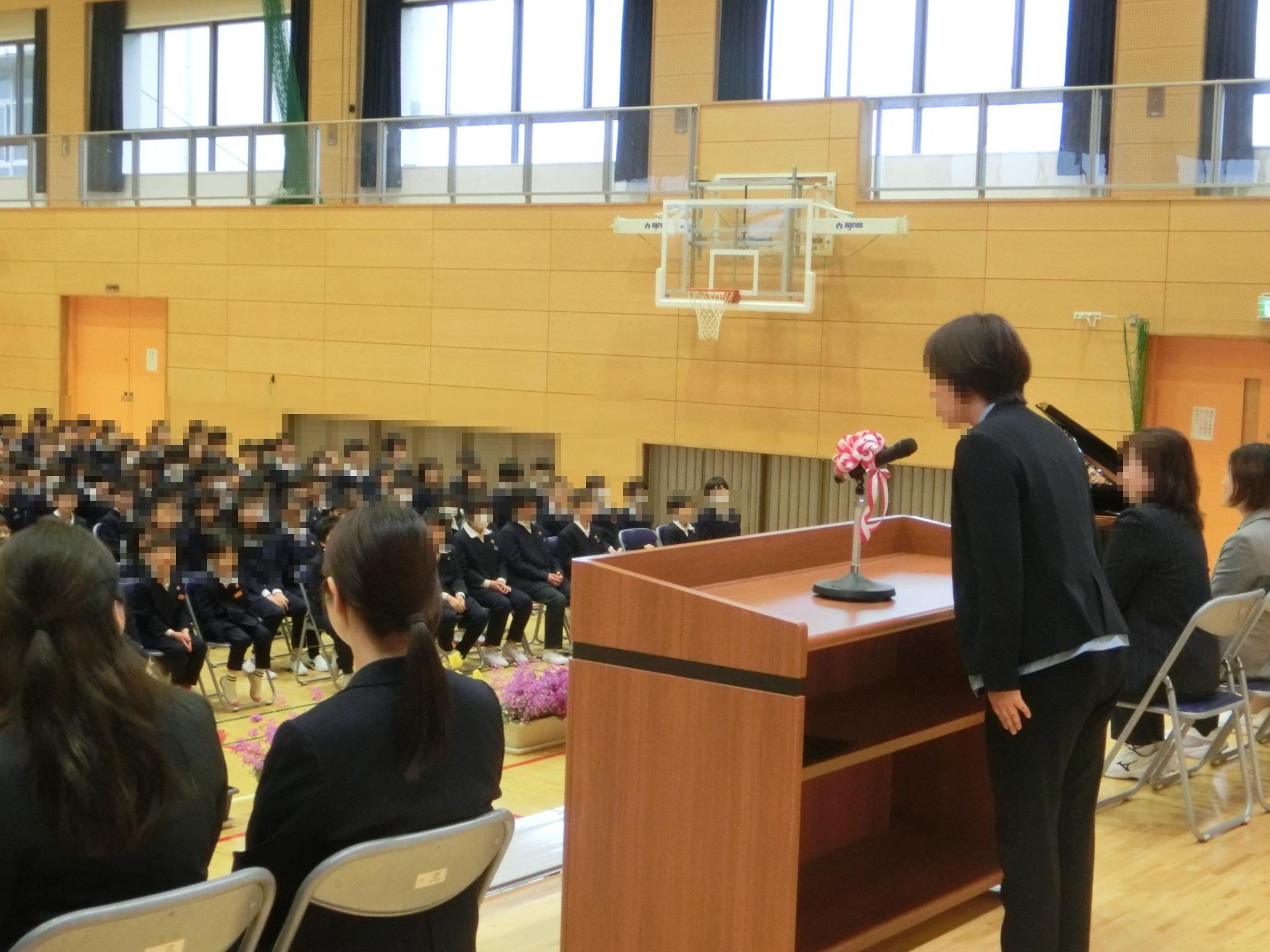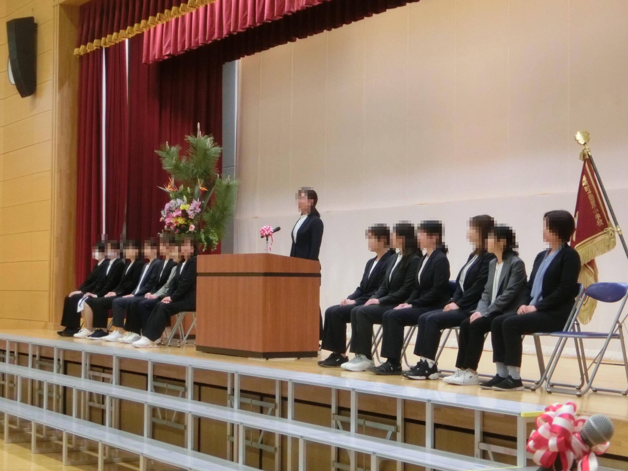 新学期は、離任式と着任式から始まります。離任式では、お別れする先生方のお話を聞いた後、特に深くかかわった児童の代表が、お別れの言葉とともに花束をお渡ししました。着任式では、新しくお出会いする先生方のお話を聞いた後、田原小学校創立100年記念歌の「田原っ子の歌」で歓迎しました。